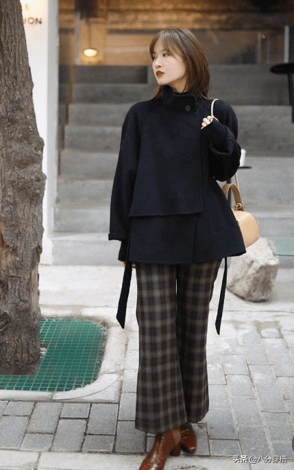 下面這位博主搭配的格紋褲很百搭, 寬大的褲腿以及復古的格紋結合起來展現出了時尚感和高級感,讓整個造型的風格變得隨性又大方,另外還結合了上面的黑色毛呢大衣,搭配起來也展現出一定的氣場,看上去很有魅力。黑色大衣作為經典的服飾,自帶顯瘦效果,十分耐穿,不管你的實際年紀如何,這麼搭配都會顯示出強大的氣場,展現出你自己的魅力。